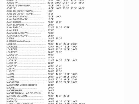 Listado de las Imágenes que se fabrican en AluMir y Alpaca