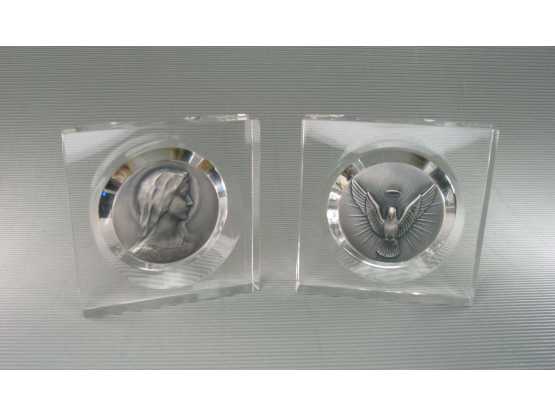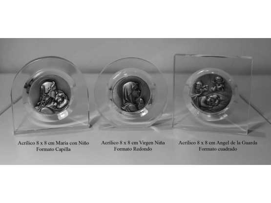 Acrílico 8 cm x 8 cm Medallas María de Perfil y Espíritu Santo