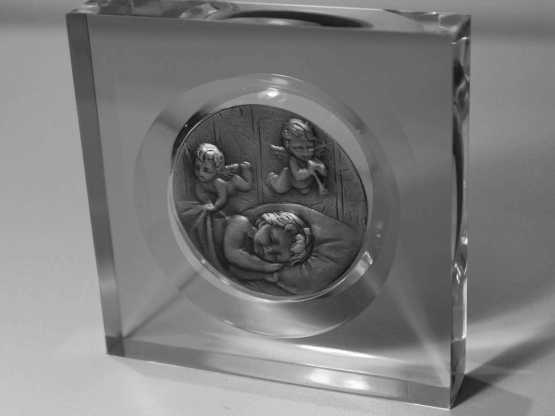Acrilico 8 cm x 8 cm con Medalla María con Niño A