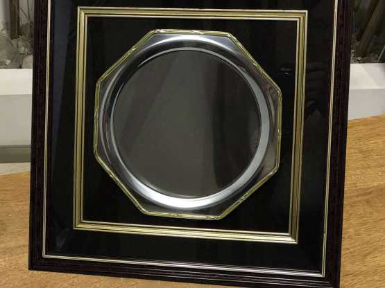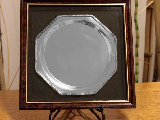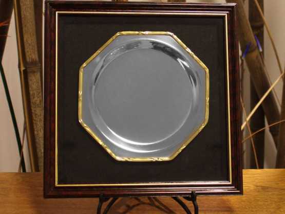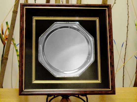 Art Net312 Plato de Acero inox. Octogonal 22 cm borde de bronce con cuadro vitrina.