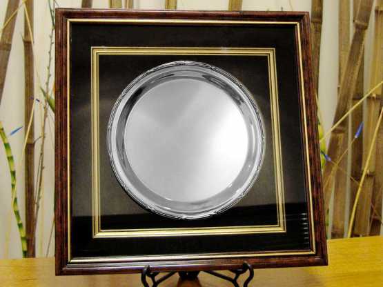 Art. Net301 Plato de Acero inox. 26 cm Redondo con cuadro vitrina.