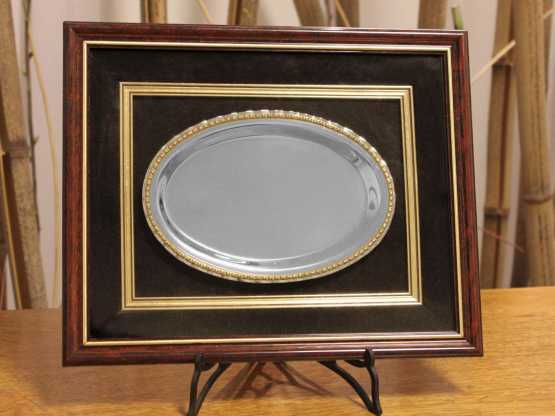 Art Net308 Bandeja de Acero inox. Oval de 22 cm x 15 cm con cuadro vitrina